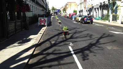 Having people cycling in the carriageway is obviously a cheap solution, but more than that, it does avoid the clutter that cycle tracks can bring to the visual and physical landscape, notwithstanding the fact that cycle tracks and most street clutter is there because of motor traffic. Quiet streets still allow access by motor vehicle for those who need it, but over time, we get all sorts of opportunities to repurpose space for other things.